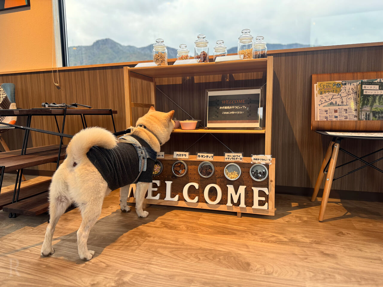 受付フロントの横には、犬用おやつのビュッフェが用意されています。