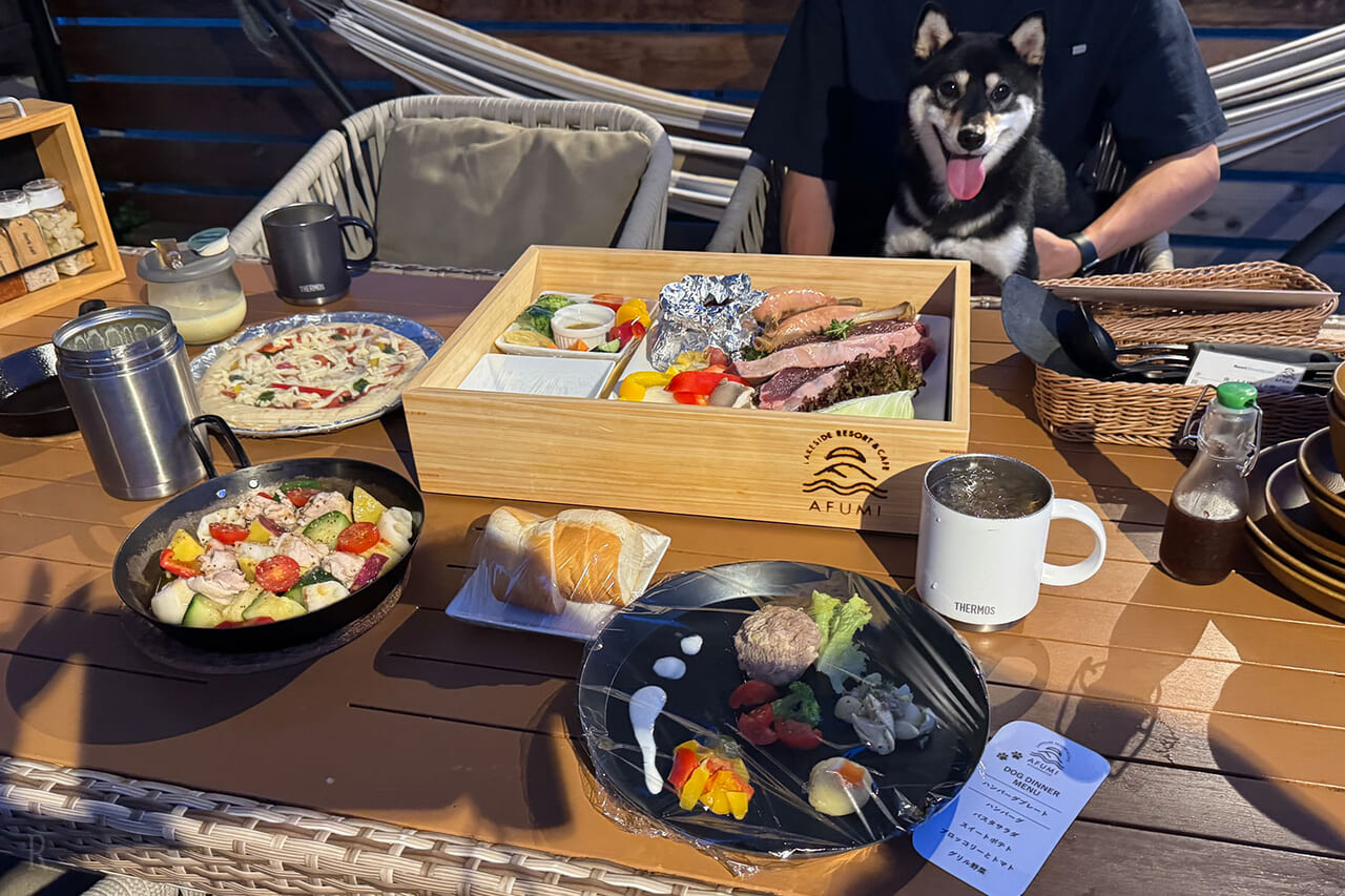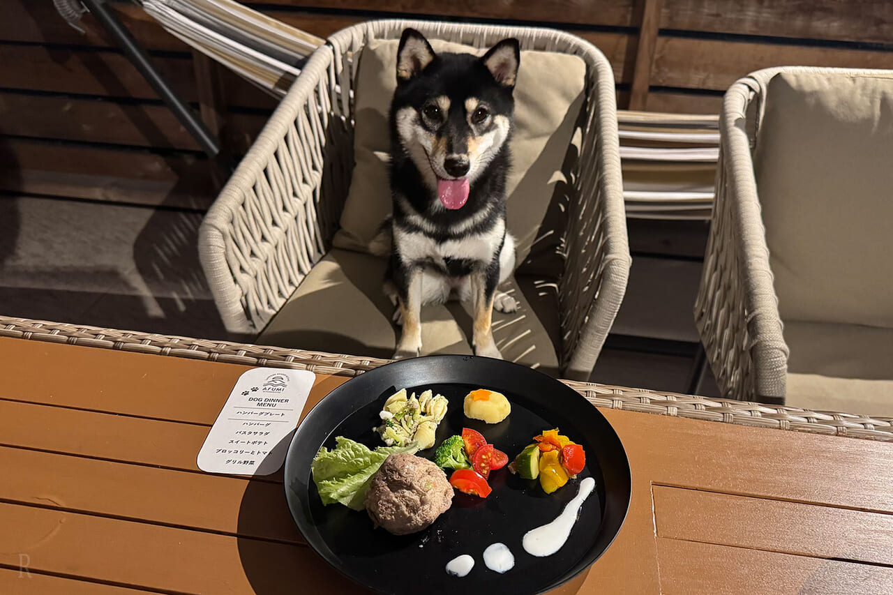 また、事前予約をすればわんこ用のディナーも用意してもらえます。贅沢なワンプレートにはるも大喜び!せっかく旅行に来たのだから、愛犬にもご褒美をあげたいですよね。