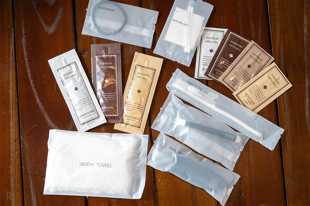 そして嬉しかったのがアメニティの充実度。基礎化粧品だけでなく、パジャマまで用意されていました。愛犬と一緒の旅行で、荷物が少なく済むのは本当にありがたいポイントだと思います。