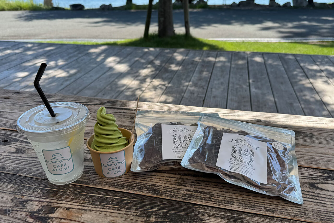 管理棟にはカフェが併設されていて、テラスはわんちゃん同伴OK!しかも宿泊ゲストなら飲食代が30%オフになるという嬉しい特典付きです。この日はスタッフさんがテラスまで来て、施設やお部屋の設備についての案内をしてくださいました。