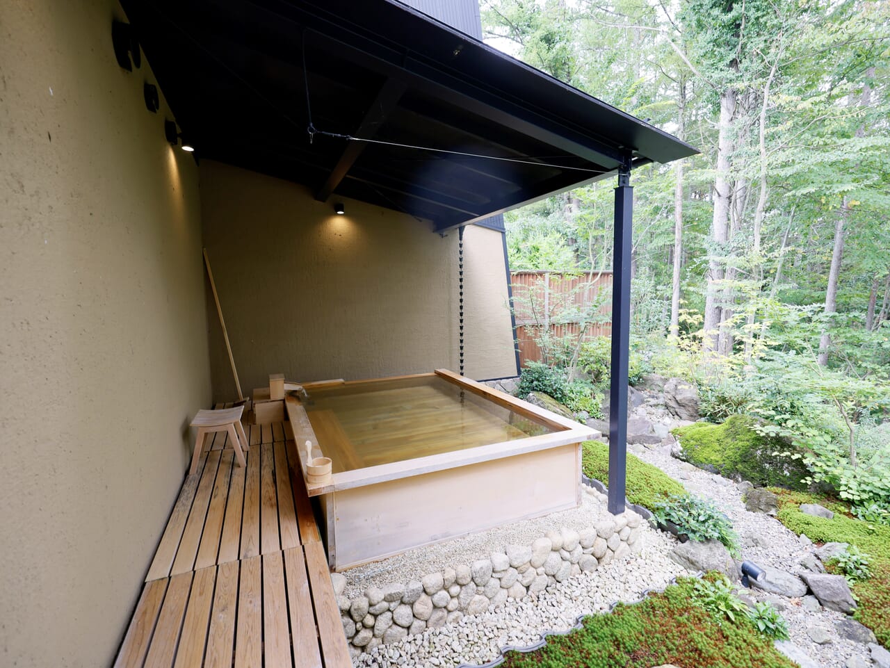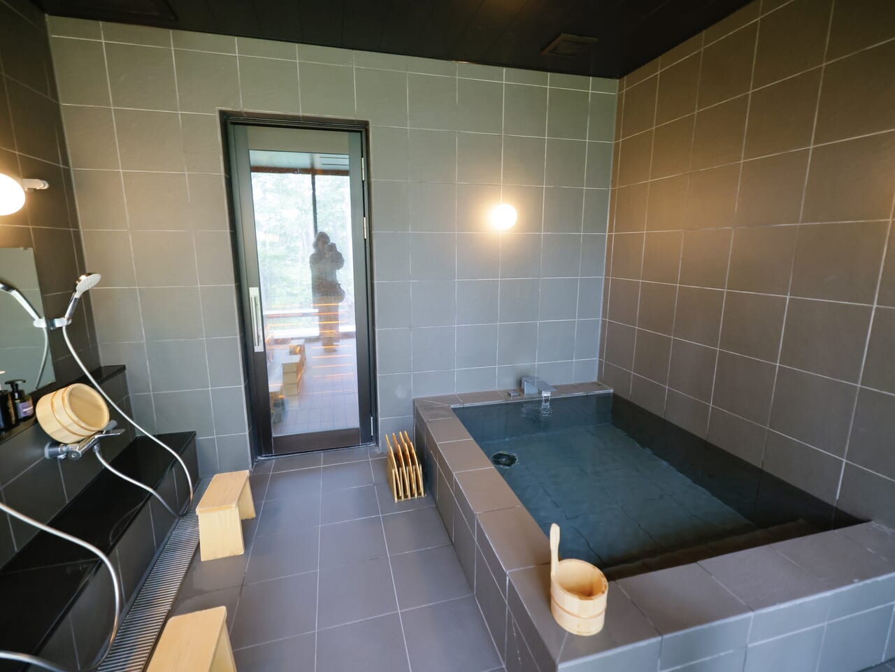 大自然を一望できる露天風呂があるのもこちらのウリ。予約制での利用になるので、希望時間がある人は早めに予約するのがおすすめです。お部屋には洗面がないので、夕飯後に入りたい人はとくに早めの予約をおすすめします!