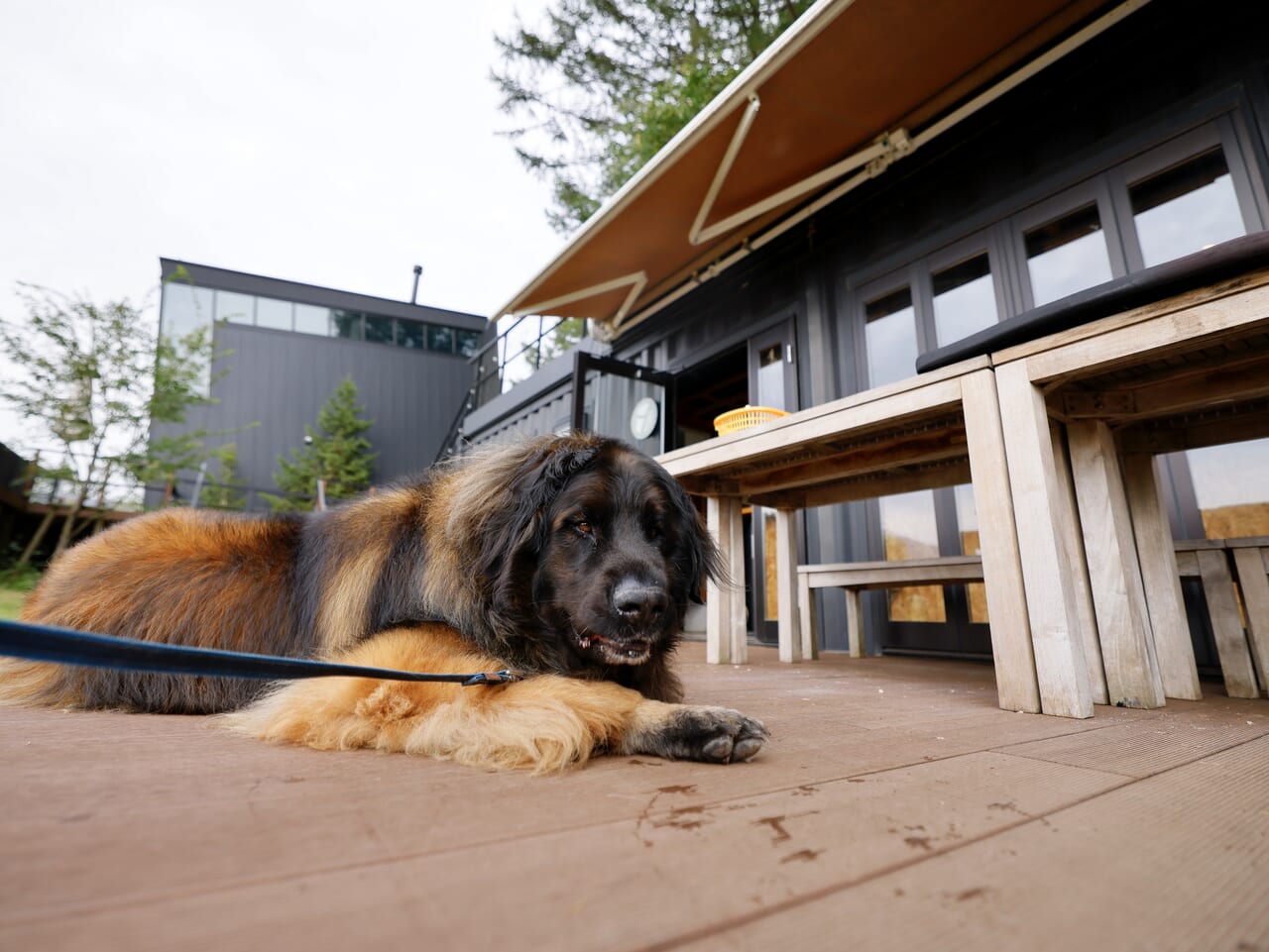 テラスにわんこを連れて出るのはOKですが、通り抜け防止のためにリード着用がルールです。もちろんテラスにはリードフックもあるので安心!我が家もぴーぷーと一緒に風を感じながら森林浴を楽しみました。