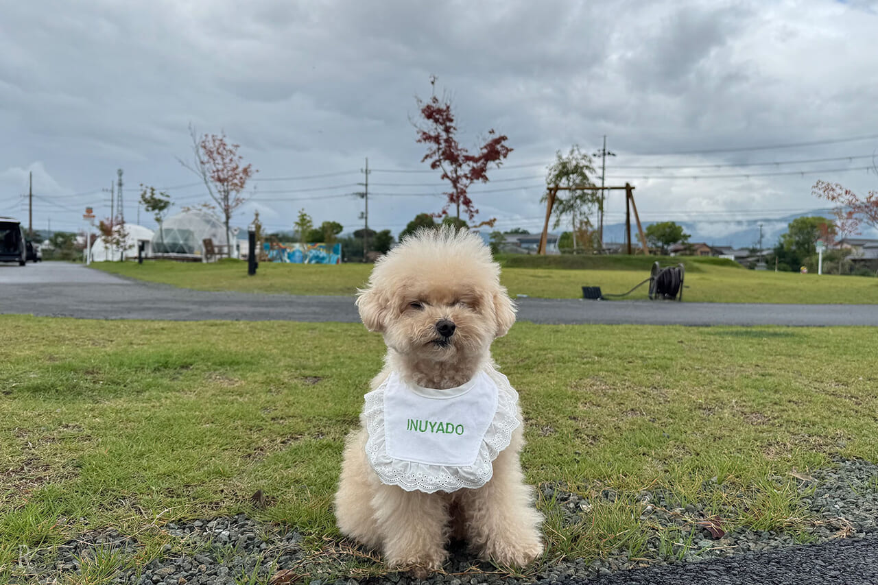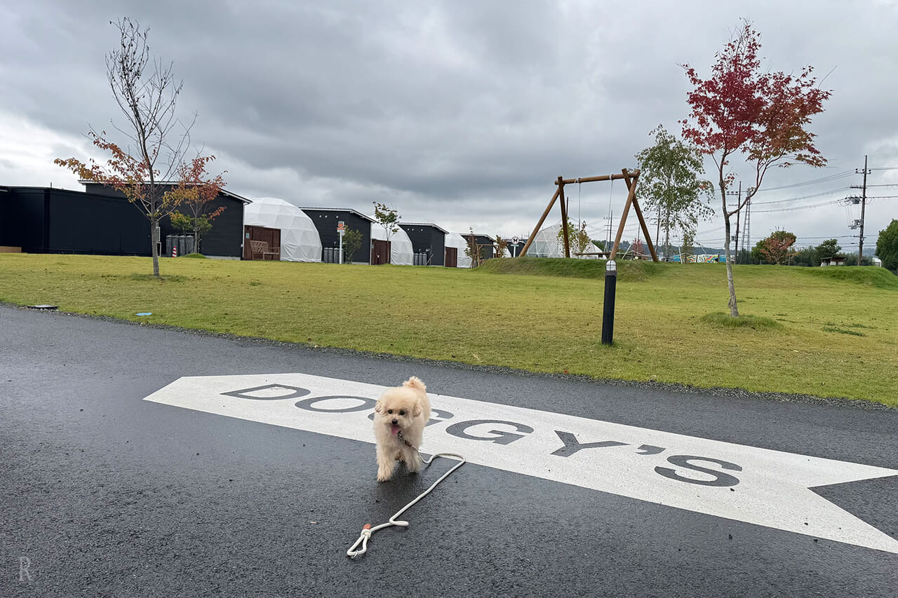 管理棟周辺の芝生エリアやドリンクバーなどがあるドーム内は残念ながらわんちゃんNGですが、奥の共有芝生エリアはマナーパンツを着用すれば愛犬同伴OK!お部屋以外にも一緒に楽しめるスポットがあるのが嬉しかったです。