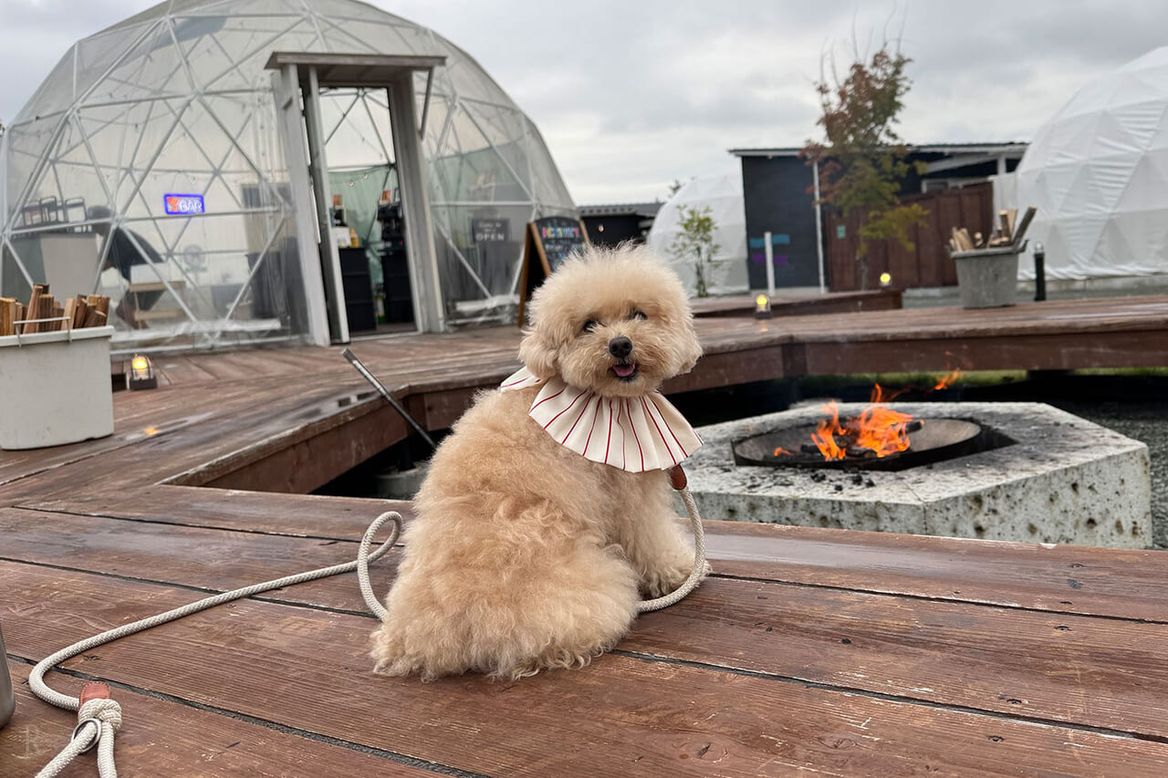 ファイヤーピット周辺はマナーパンツ着用で同伴OK!