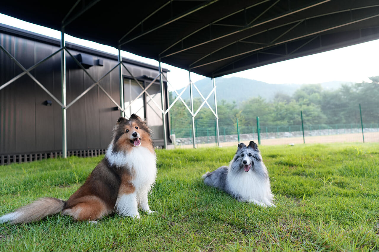 屋根付きドッグランで、雨の日でも安心