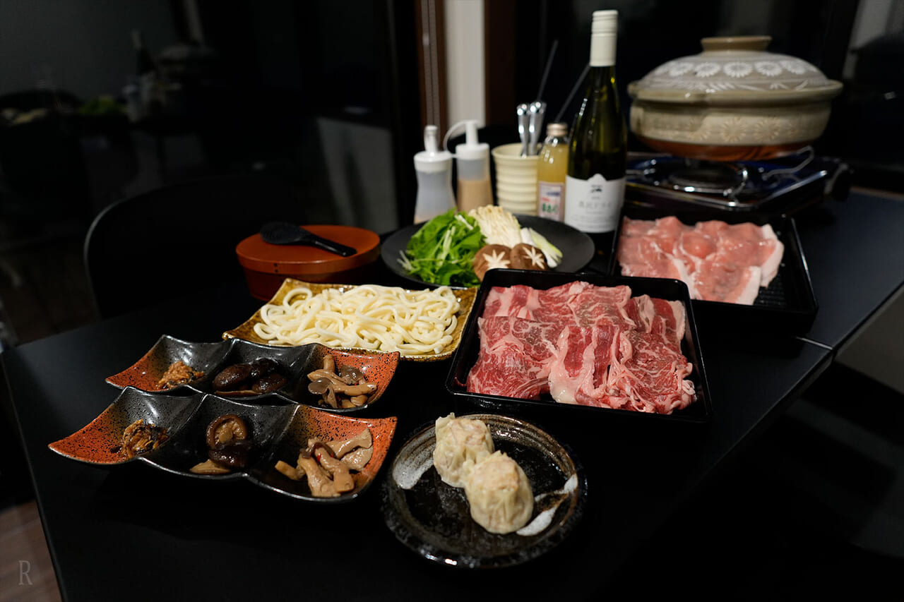 お鍋が煮える湯気と出汁の香りに2匹がソワソワしている姿が可愛くて、りんおともオプションのわんこ用ごはんを楽しみながら、みんなで賑やかに夕食タイムを満喫しました。
