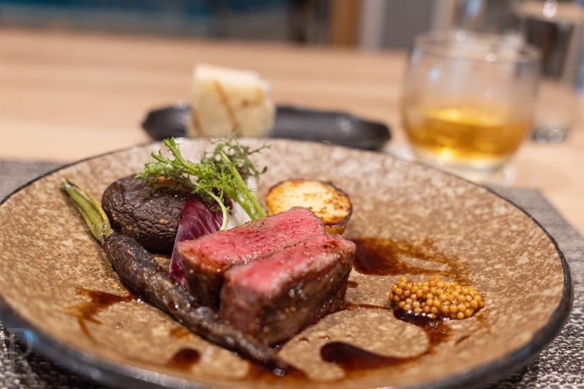 前菜・魚料理・肉料理・デザートと続くフルコースには秩父の旬の食材がふんだんに使用されていてお味もボリュームも文句なし! シェフが目の前で調理するライブ感ある演出も素晴らしく、特別感のあるディナータイムでした。今回は同席できなかったJUJUですが、お部屋食やBBQプランなら愛犬と一緒に食べられるそうなので次はそちらも体験してみたいと思いました。