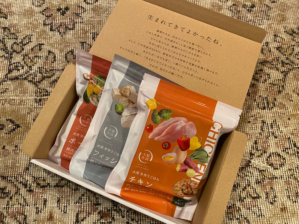また、調理方法にもこだわっていて、一般的なペットフードが高温で一気に加熱されるのに対し、犬猫生活は「低温加熱製法」を採用。80〜90度でじっくり火を通すことで、栄養を守りながら素材本来のおいしさを引き出しています。ちょっと手作りに近い“日本の職人技”みたいな作り方ですね。