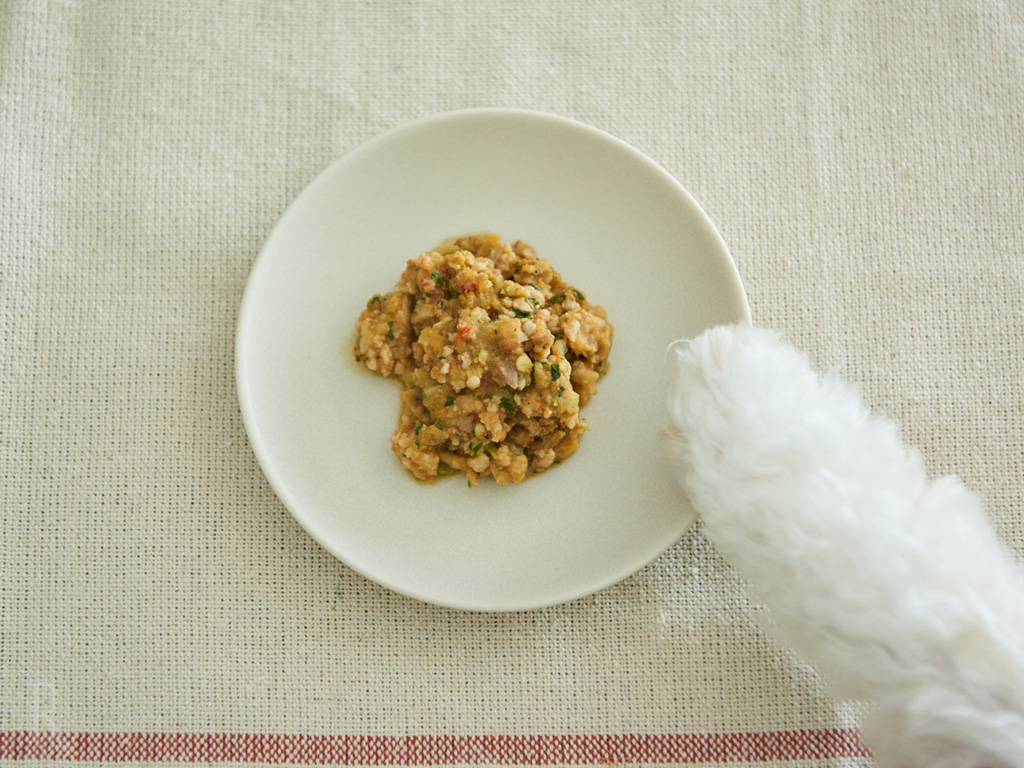 我が家はフードをローテーションしているので、その日のフードに合わせてトッピングできるのが助かります。小分け包装なので手間も少なく、冷凍でストックしておけると安心です。 国産無添加※で安心なのも嬉しいポイントです。柔らかめのごはんなので、シニア犬のはなちゃんも食べやすそうです。