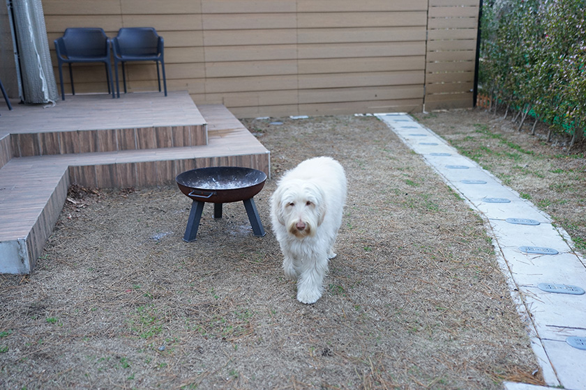 お部屋直結のお庭にはファイアーピットも用意されていて愛犬と一緒にキャンプファイアーが楽しめるのもドッグリゾートを謳う「モリトソラ箱根」ならでは。家族水入らずでキャンプ体験が楽しめるのが楽しかったです。