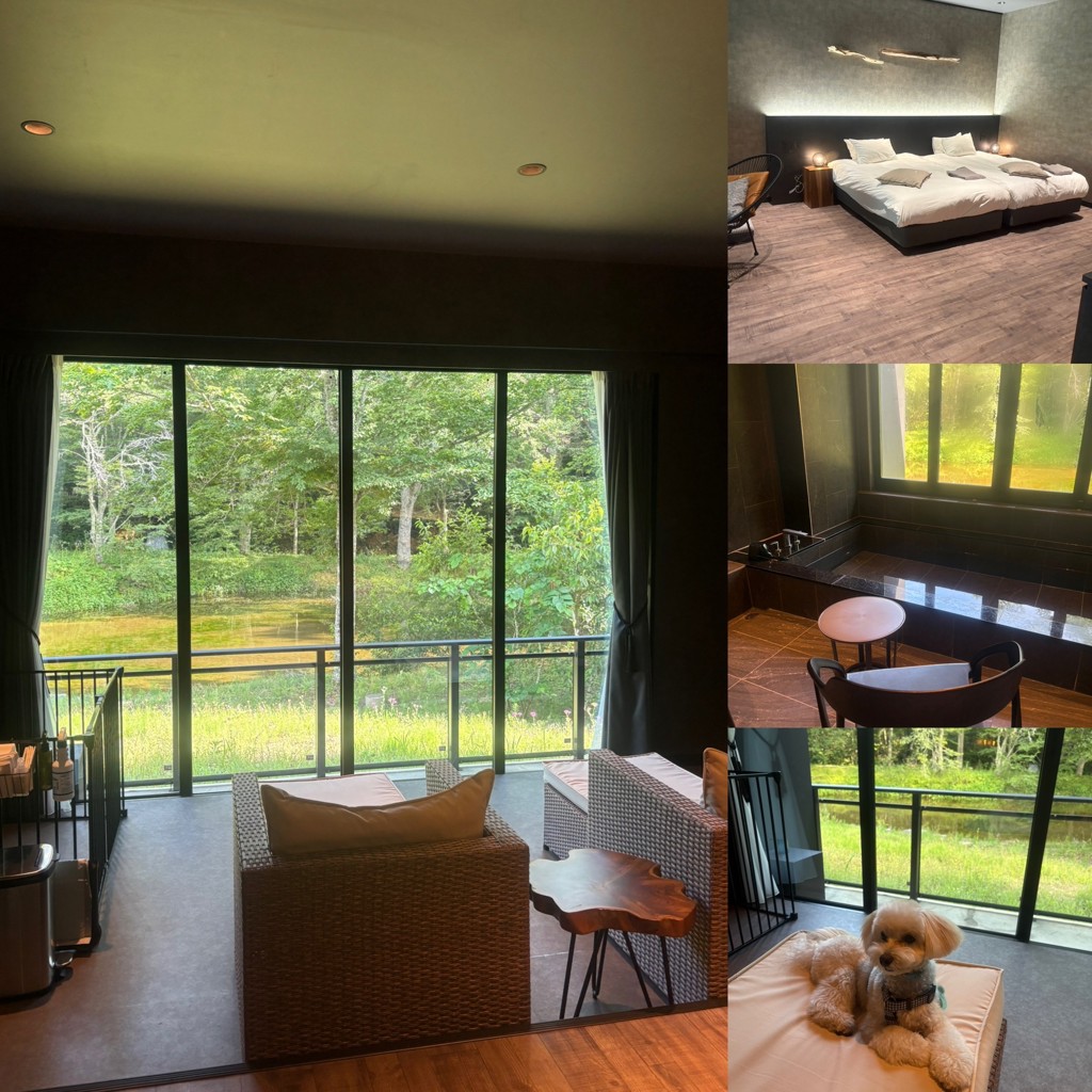 お部屋は広くて重厚感もあり、リラックスできました。露天風呂も素敵でした。ワンコもずっと興味津々でお部屋を散策してました。スイートは他の犬の声が聞こえたりしなかったので我が家の犬達にはとても良い環境でした。