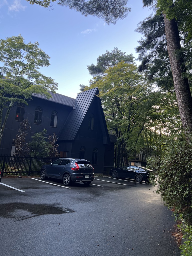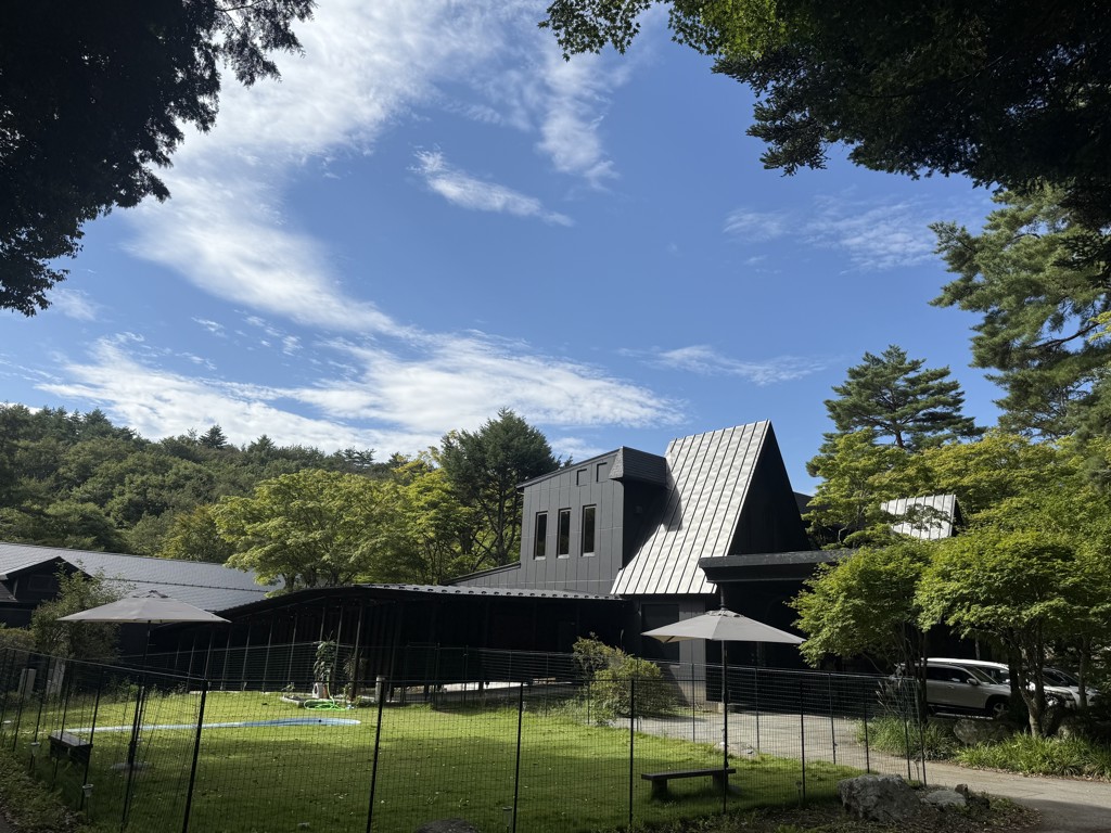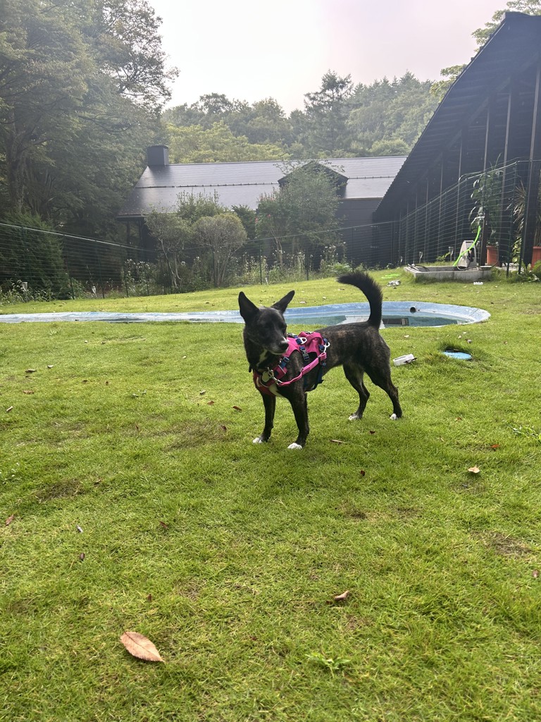 真っ黒 建物か森林の中に密かにあり素敵作りでした。犬宿とお聞きしましたが 家の犬は小型犬なので段差や階段なのが少し気になりました犬のお食事お野菜が少しかためで大型犬にはいいかも