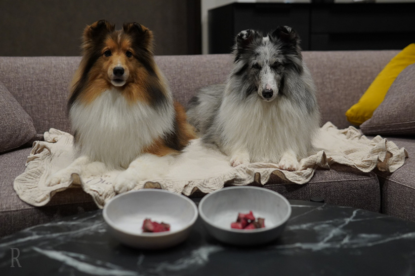 お肉だけが鈴と音のご飯ではありません! もちろんわんこのご飯もしっかり用意されています。鈴と音にひとつずつ用意してくださったプレートにはお野菜とお肉がバランスよく盛り付けられてまるでお子様ランチのよう。もちろん鈴も音も大興奮であっという間にごちそうさま!