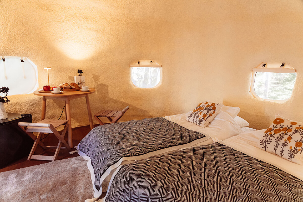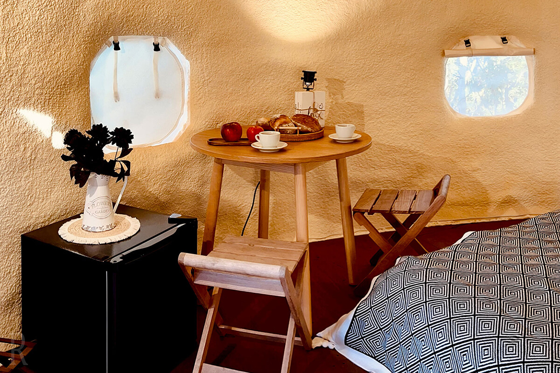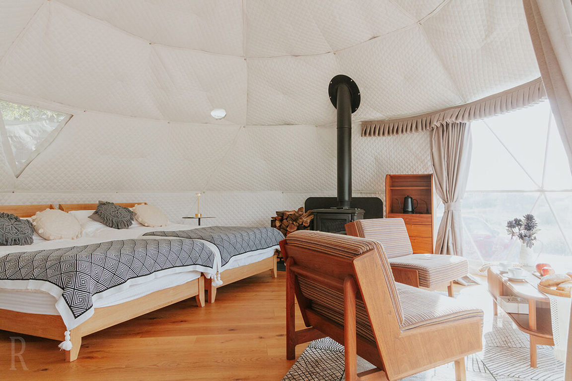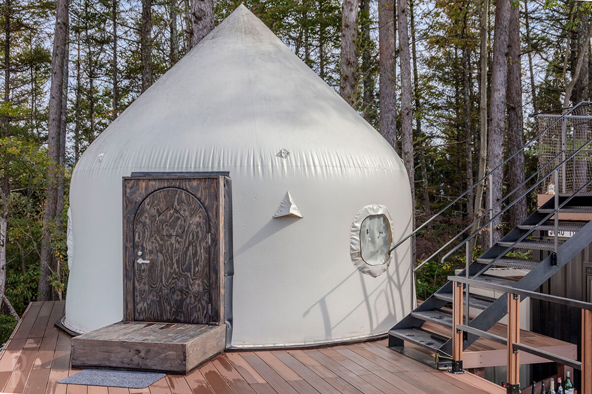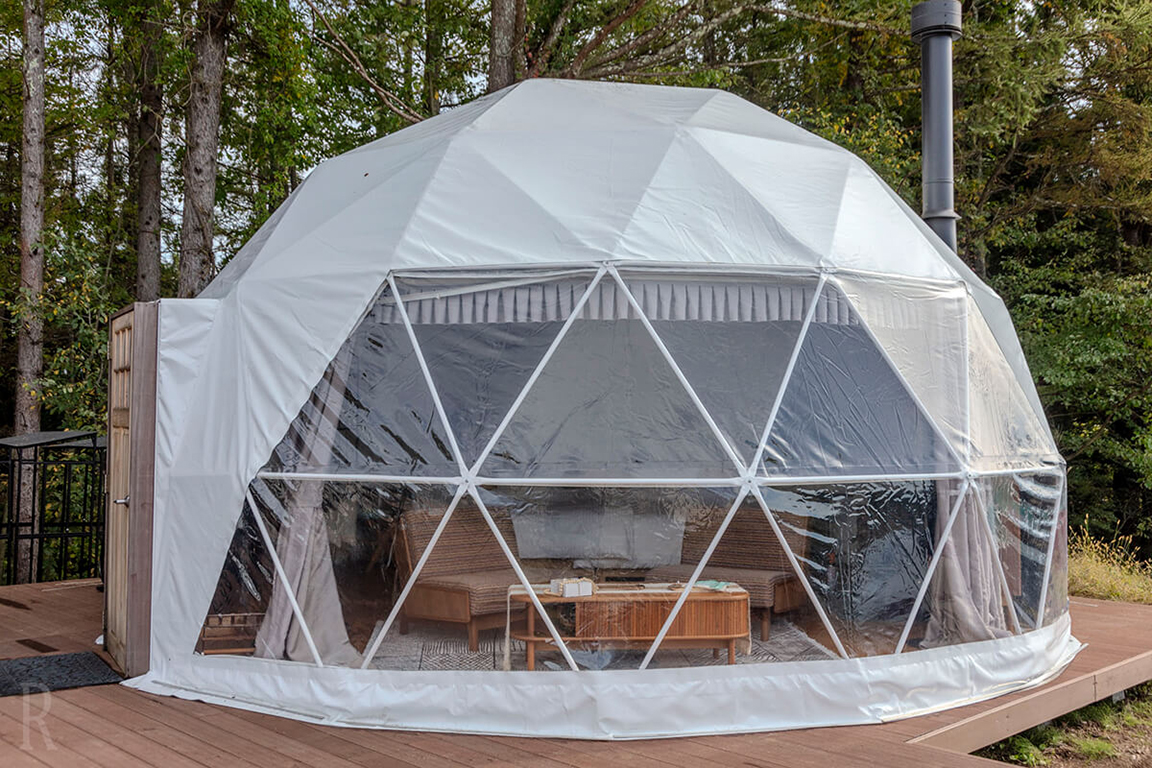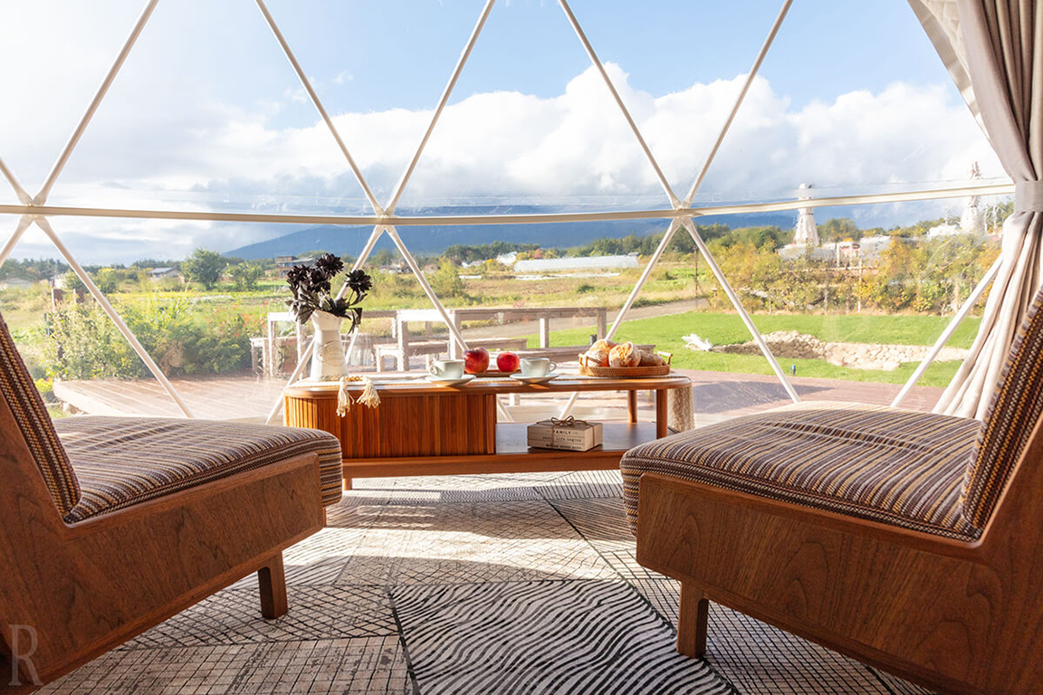 八ヶ岳や広大なオーガニック畑を望む広々としたドームテント。