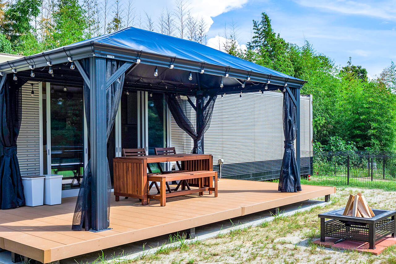 また、トレーラーハウスは断熱材が入っているため室温を快適に保つことができ、真夏や冬場でも心地よい温度でお過ごしいただけます。