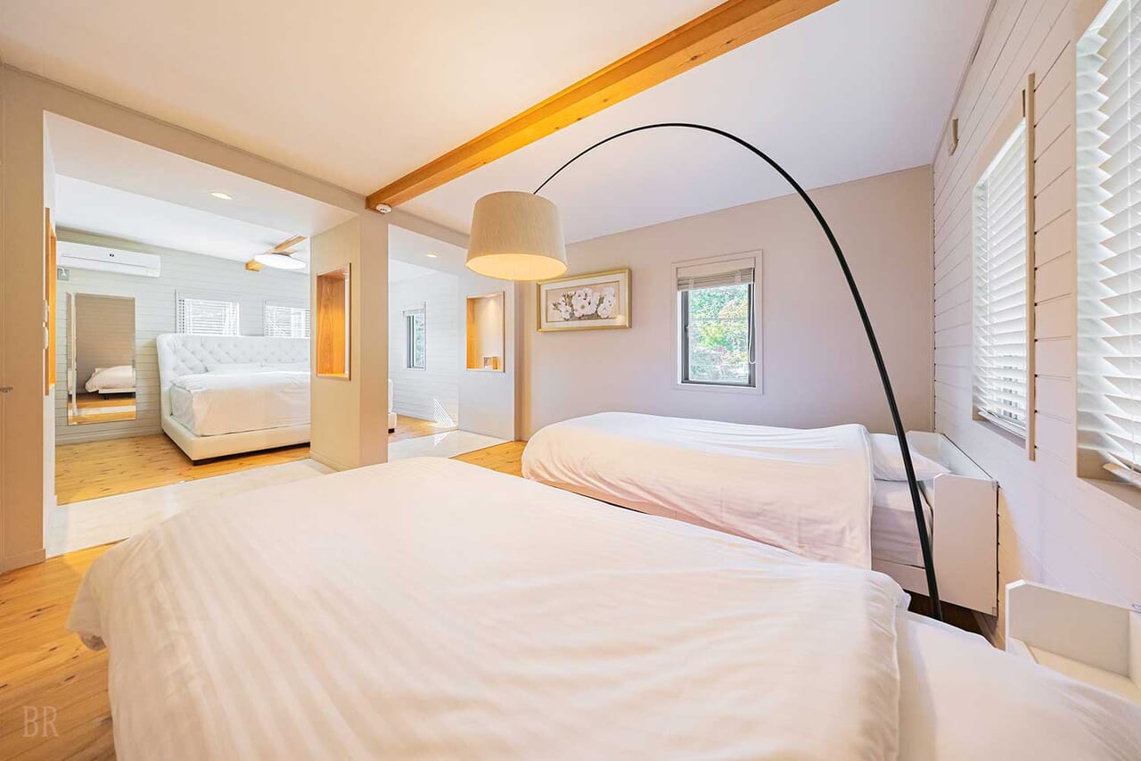 - 〇寝室1 キングサイズベッド(シモンズ)×1台 シングルベッド×2台 〇寝室2 ※わんちゃん添い寝可能 クイーンサイズベッド×1台 〇エキストラベッド 2段ベッド×1台