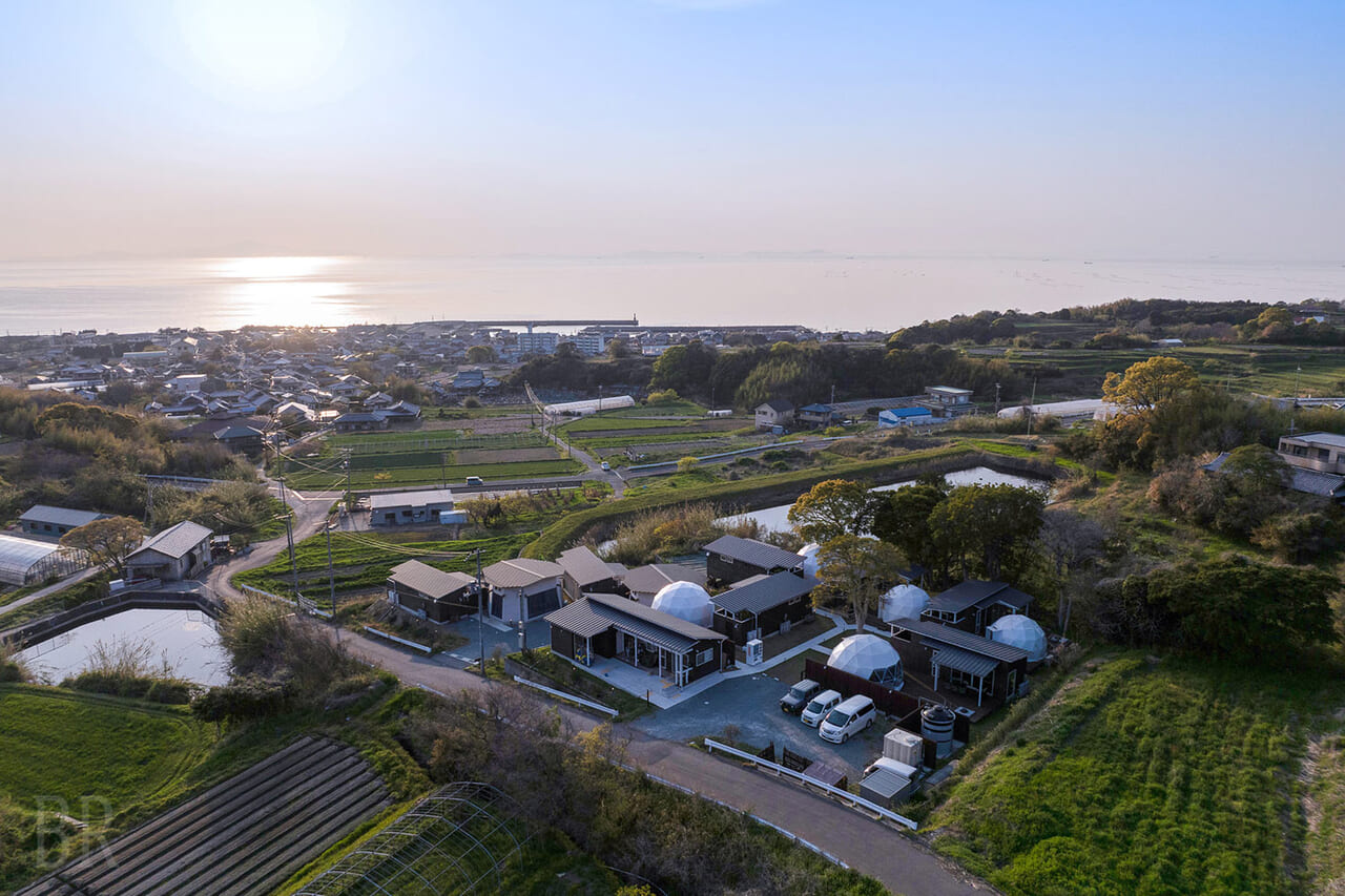 淡路島の高台に位置する「GLAMP TIME淡路」は、客室に天然温泉を備えた贅沢なグランピングリゾートです。