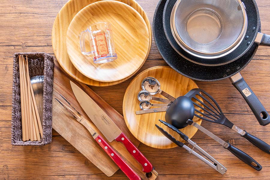 - 冷蔵庫、エアコン、電気ケトル、包丁、まな板、カトラリーセット(フォーク・スプーン・ナイフ)、 箸(割り箸)、食器類、マグカップ(コップ)、ハンドソープ、アルコール消毒液、キッチンペーパー、殺虫剤系、虫よけスプレー、電子蚊取り器、懐中電灯、トースター、IHコンロ、コーヒードリッパー