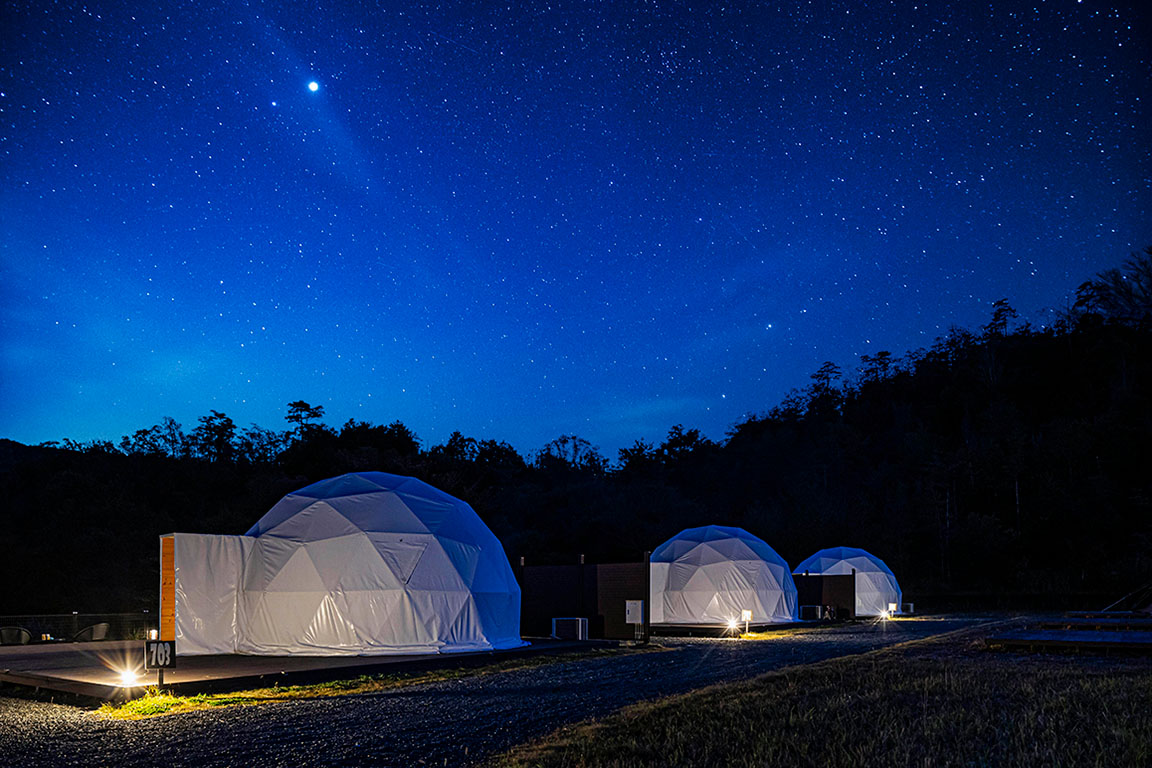 季節ごとに移ろう自然と虫たちの声に包まれ、夜には一年を通して満天の星空をお楽しみいただけます。