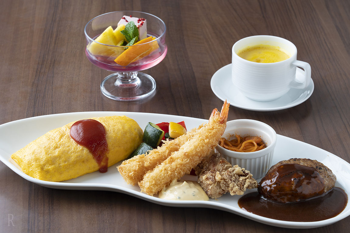 (ハンバーグ、ポテト、スパゲティ―、からあげ、エビフライ、オムライス)