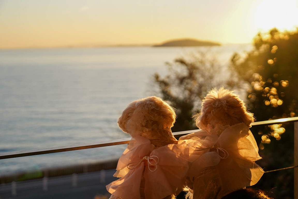 波音をBGMに、夕焼け色に染まる海を借景に、愛犬とのバスタイムを心ゆくまでご堪能ください。 -
