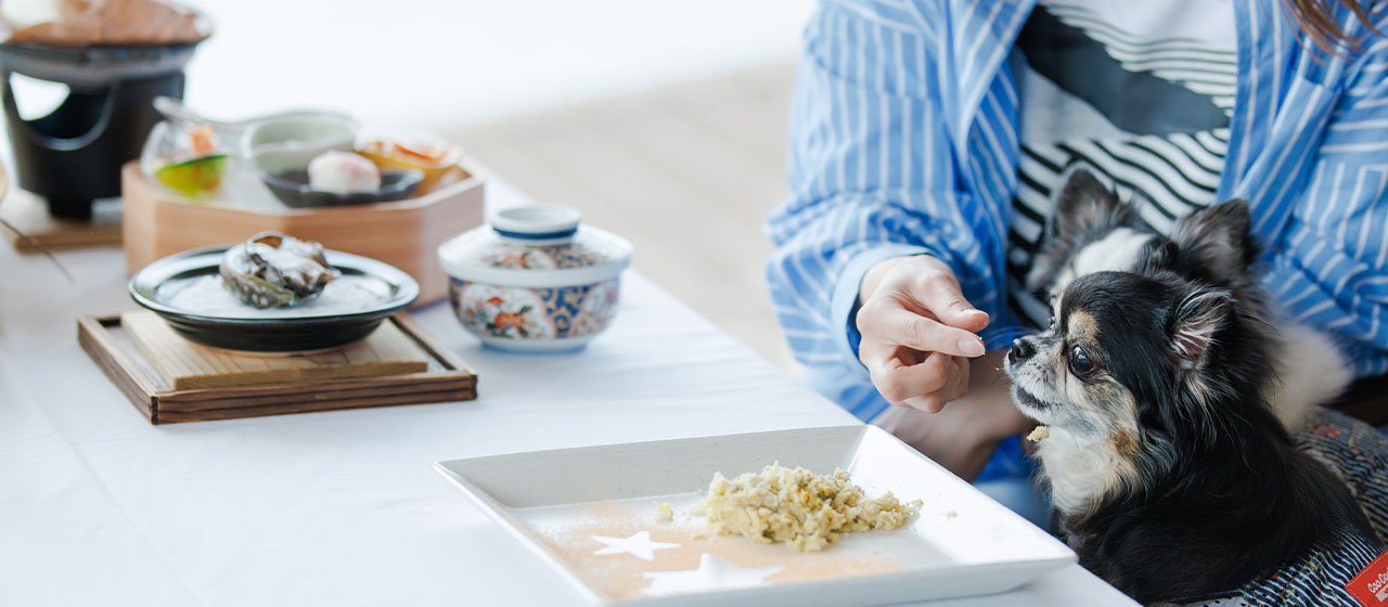 名古屋の一流料亭で修業を積んだ和食一筋の料理長が作るこだわりの創作会席をわんちゃんとともにお楽しみください。