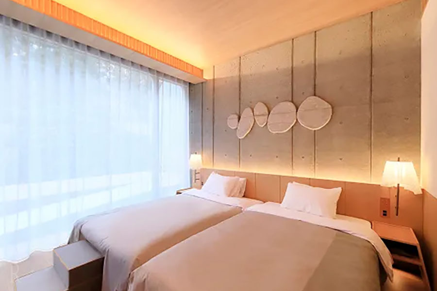 - ミニバー(free)、コーヒーメーカー、ドライヤー、電気ケトル、電子レンジ、スマートフォン充電器、Bluetoothスピーカー、グラス・カップ各種、スキンケアセット、シャンプーリンス、ソープ類、館内着、パジャマ、バスローブ、館内履き、スリッパ、タオル類、歯ブラシセット、ヘアブラシ、シェーバー