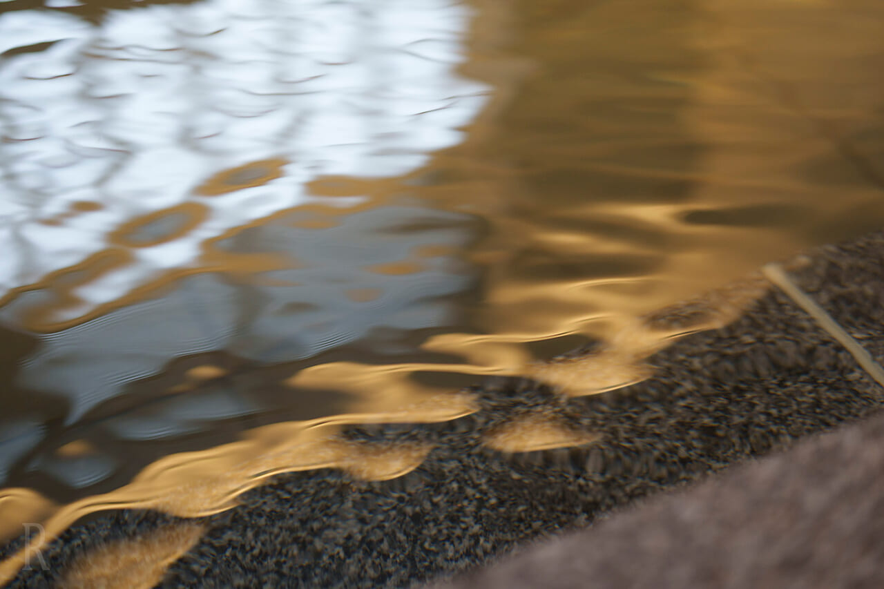 小川のせせらぎのように湯が流れ、足元を温めて日常の疲れを癒します。 -