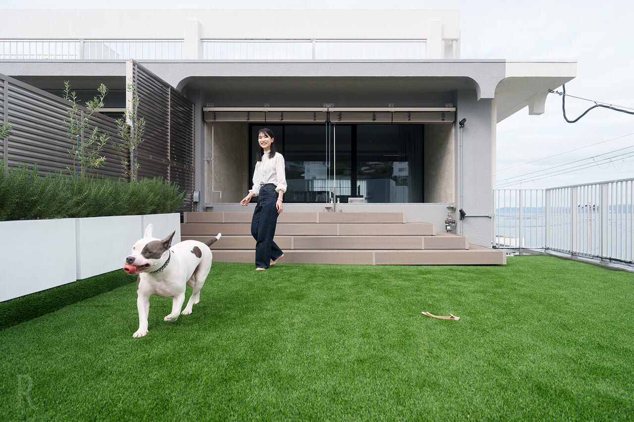 高品質な人工芝「coool Turf」は毛足が長く、わんちゃんの足腰に優しい環境です。