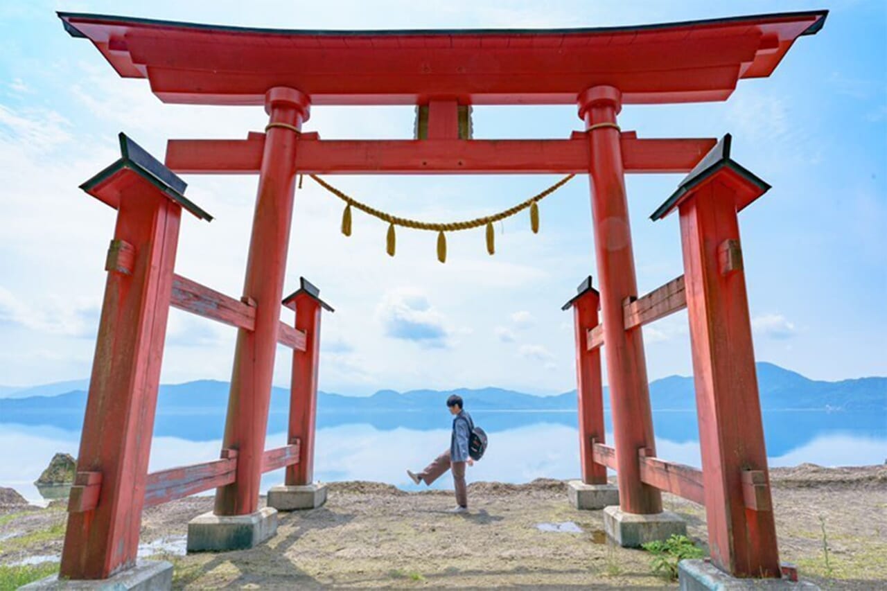 水深423.4mを誇る、日本で一番深い湖です。田沢湖の見どころは、なんと言っても息を飲むほど美しい瑠璃色の湖面です。夏には周辺の木々の緑とキラキラ光る湖面の調和が素晴らしく、冬には白銀の世界の中、風に揺られて静かに波うつ湖が神秘的な景色を見せてくれます。約40分をかけて一周する遊覧船もおすすめです。田沢湖は「たつこ姫伝説」の地でもあり、金色に輝く「たつこ像」がシンボルとして有名です。また湖畔にある「御座石神社」は湖面の青と赤い鳥居のコントラストが美しく、フォトスポットとして有名です。境内では人気の水占いみくじができます。