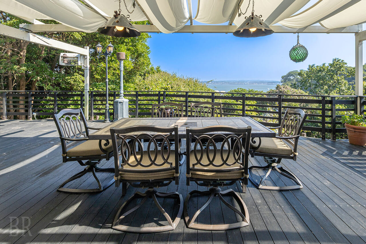 50平米あるウッドデッキは、海を見下ろせる絶景です。人工芝のドッグランに比べて、夏のわんちゃんの足裏にも優しくなっています。