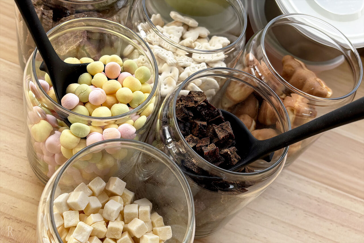 すべて無料でお好きなだけ食べ放題です。さらに、一番下の段には匂いを試せるテスターをご用意。
