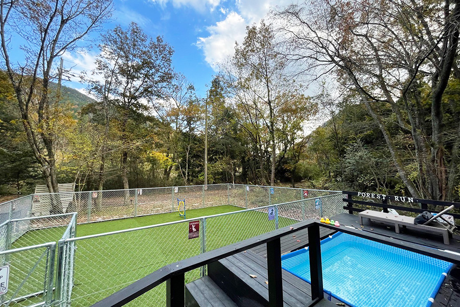 屋内・屋外に設置されたプライベートドッグランは、一棟貸切型のヴィラタイプでは日本初となります。