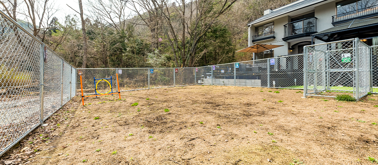屋内・屋外に設置されたプライベートドッグランは、一棟貸切型のヴィラタイプでは日本初となります。