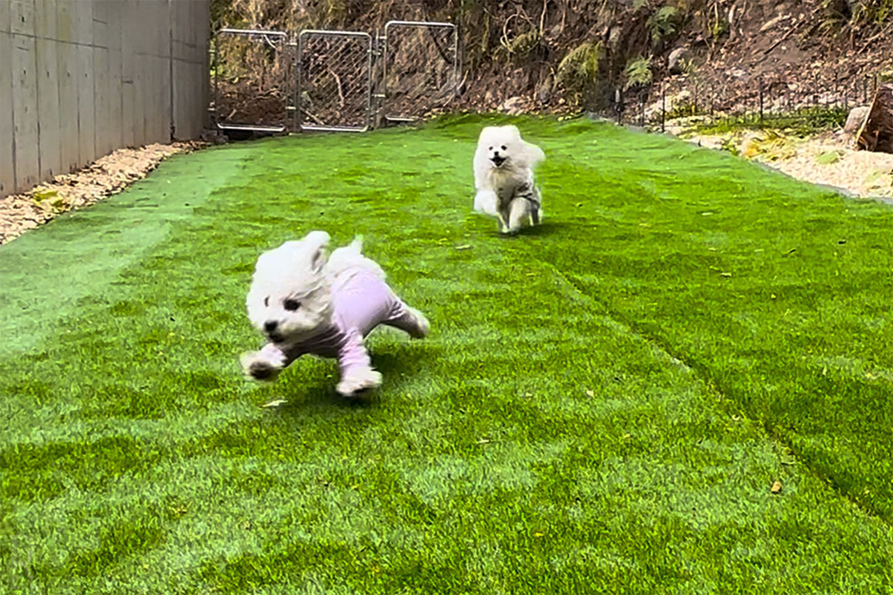 ワンちゃんの足腰にやさしい人工芝採用し、安全に遊んでいただけます。