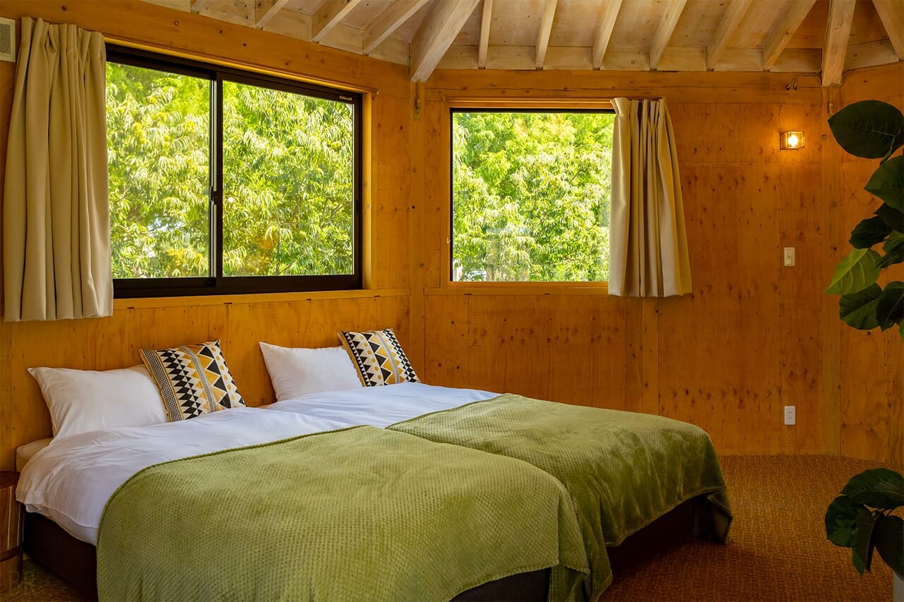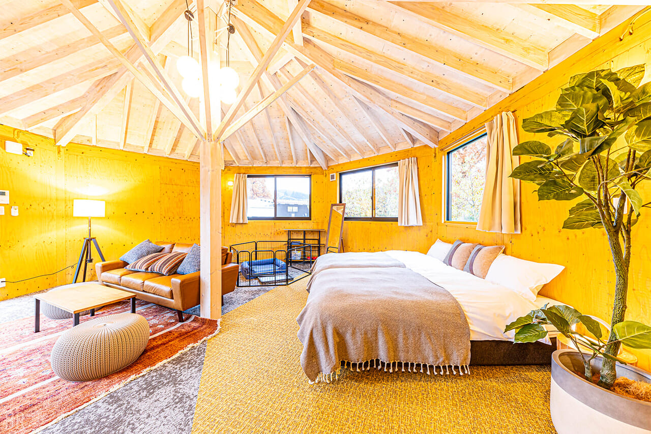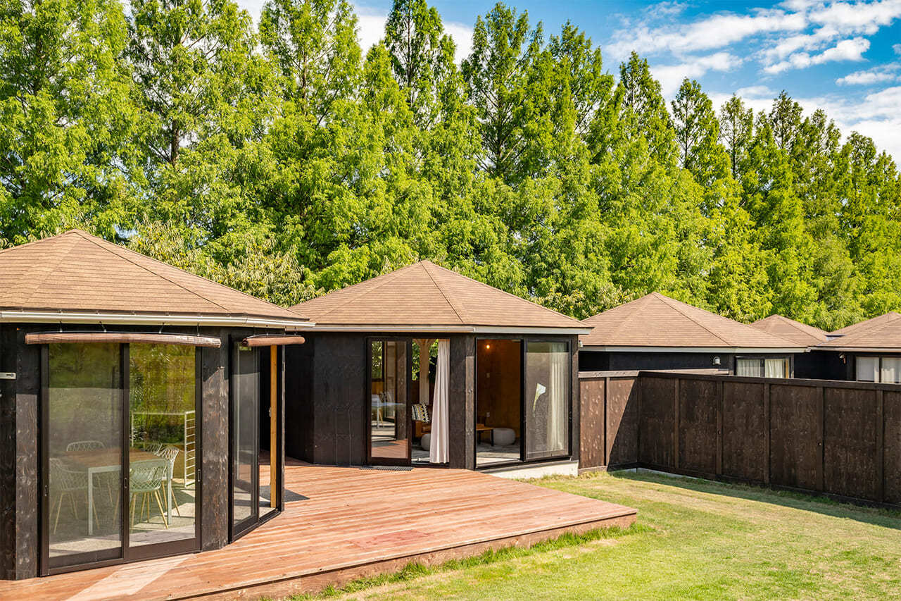全てのお部屋からメタセコイアを望むことができる非日常空間。プライベートヴィラならではの自由な空間と絶景をお楽しみいただけます。