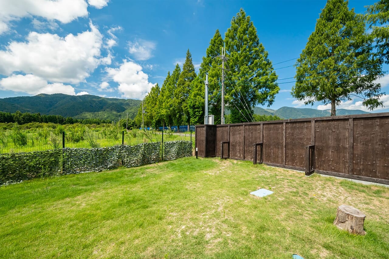 ヴィラには、愛犬が思い切り遊べる約110㎡の専用ドッグランが併設されており、贅沢な環境を提供します。ご家族と大切なワンちゃんが、非日常のプライベートな時間を満喫するための特別な場所です。