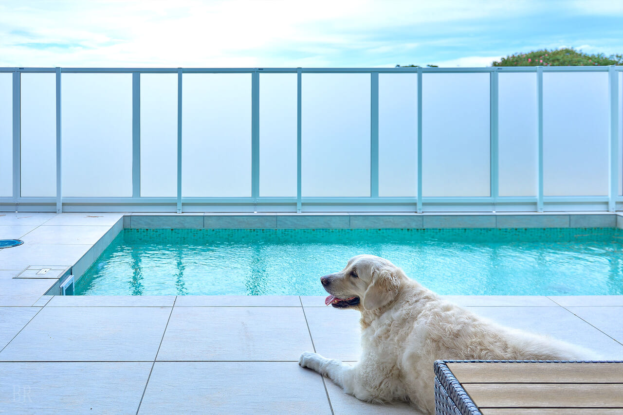 ワンちゃんと一緒に楽しめる プライベートプールを完備。