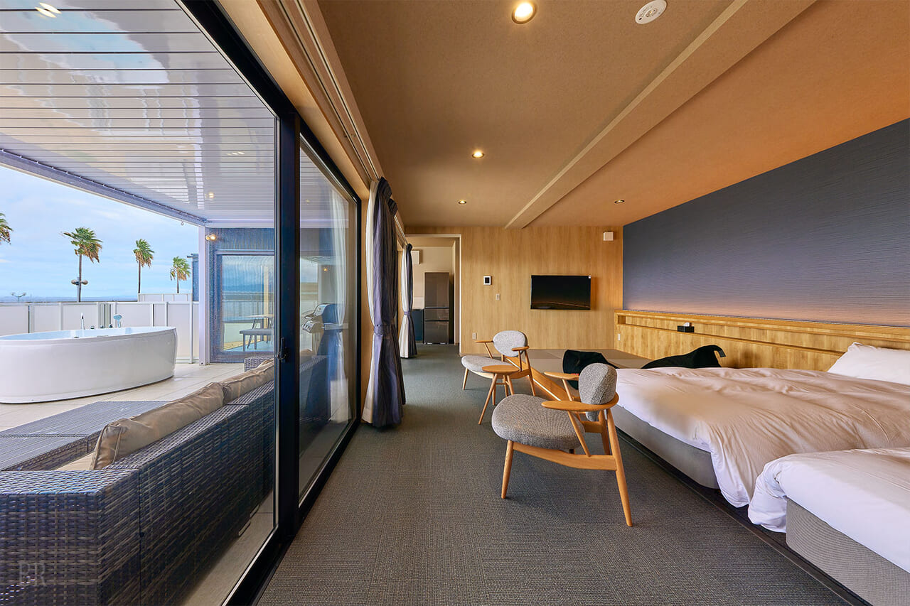 青い海と美しい夕日を一望できる 全室オーシャンビューの客室