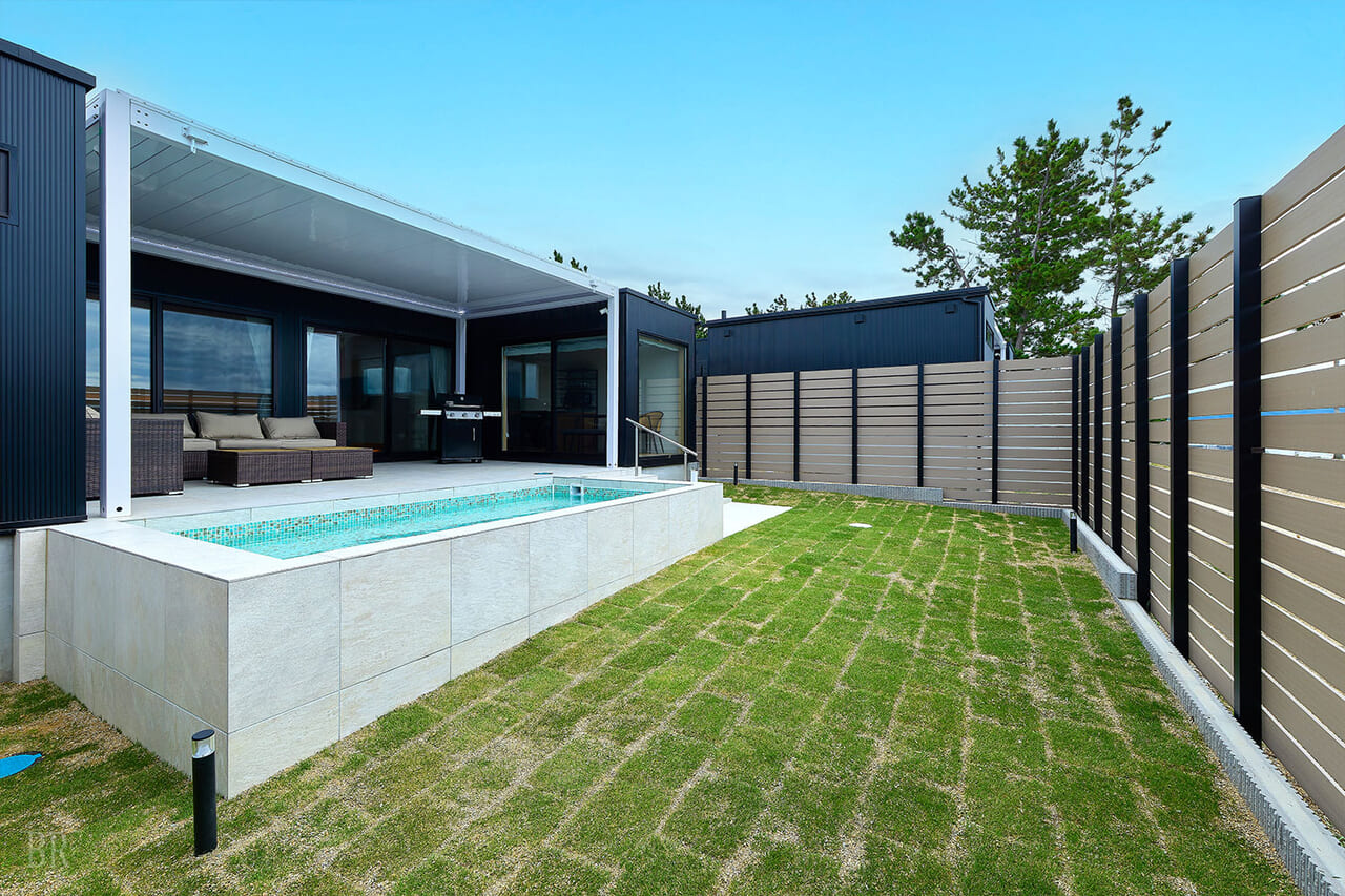 ワンちゃんと一緒に楽しめるプライベートプールを完備。プールは水深50cmの浅め設計なので、 愛犬はもちろん小さなお子様も 安心してお楽しみいただけます。