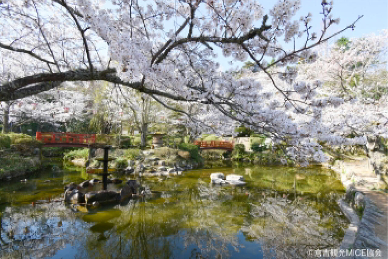 倉吉市の象徴である標高204メートルの打吹山のふもとに位置するこの公園は、明治37年に当時皇太子であった大正天皇の山陰行啓を記念して整備されました。「さくらの名所百選」や「森林浴の森百選」にも選ばれており、春にはおよそ4,000本の桜と4万本ものツツジが咲き誇ります。開花の時期には「倉吉春まつり」も開催され、多くの人でにぎわいます。