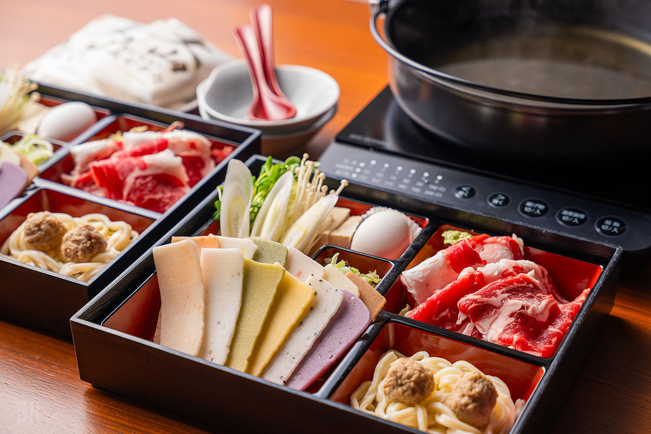 名物・12種類の餠しゃぶ+東伯牛鍋セット