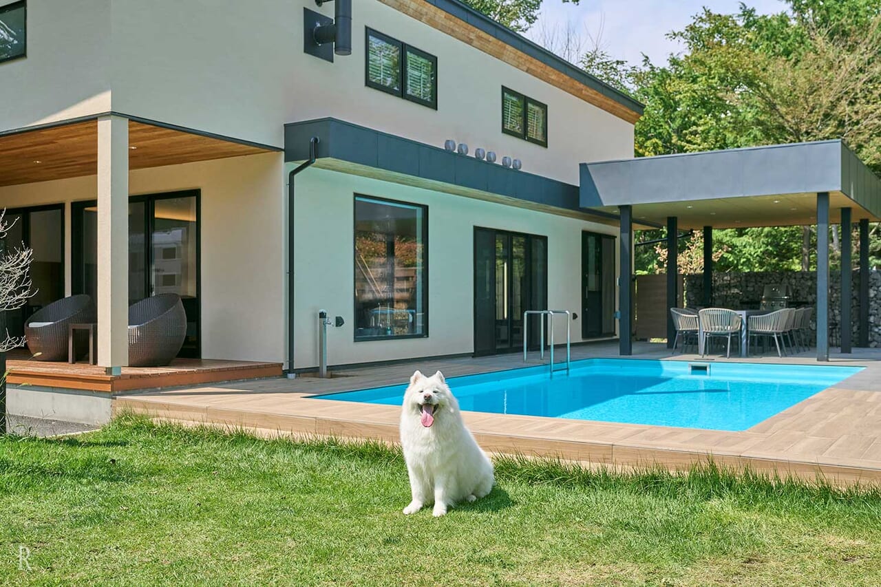 八ヶ岳の麓に佇む、プライベートドッグラン付きの一棟貸切ヴィラ。富士山を望む大きな窓や専用ガーデン、